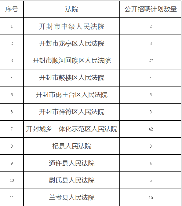 附:2026年开封法院系统聘用制书记员招聘职位表
